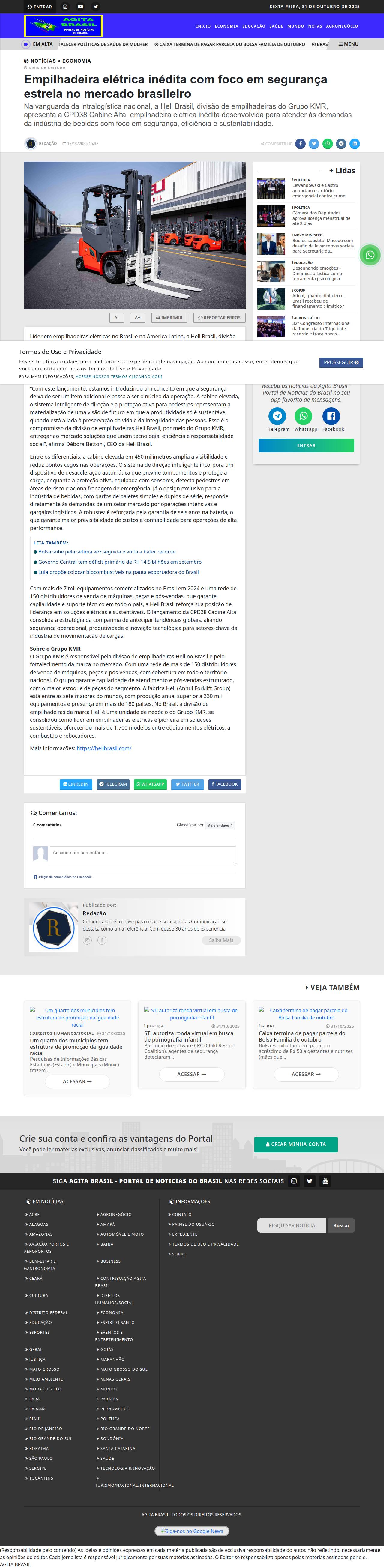 Empilhadeira elétrica inédita com foco em segurança estreia no mercado brasileiro - Agita Brasil - Portal de Noticias do Brasil